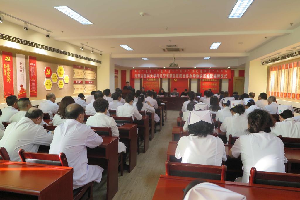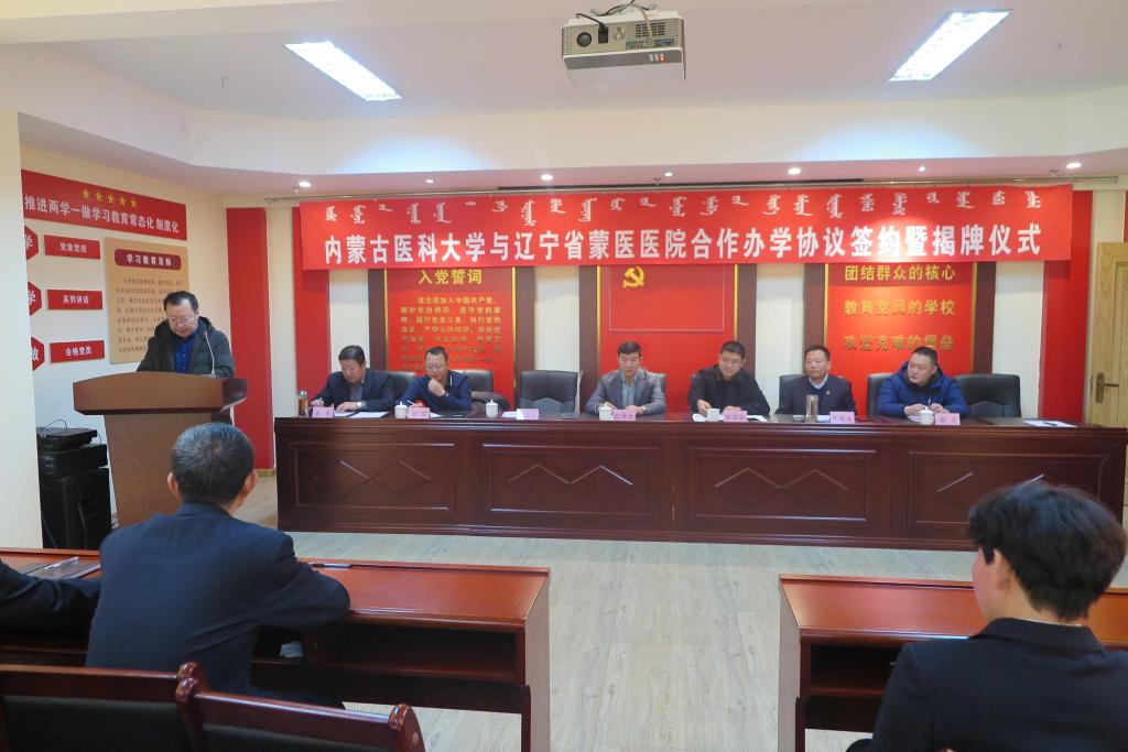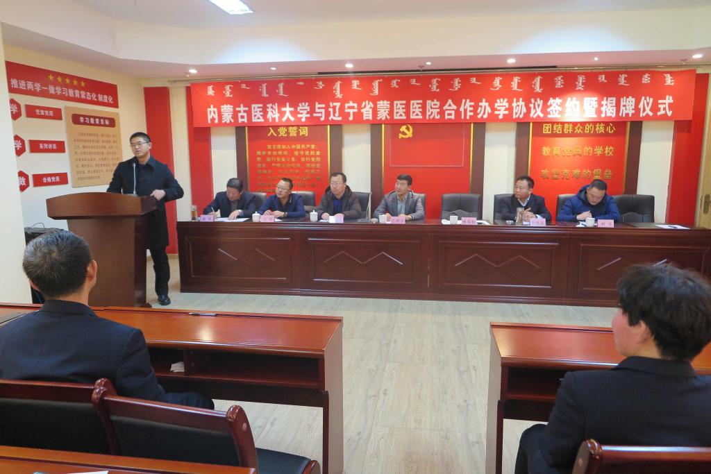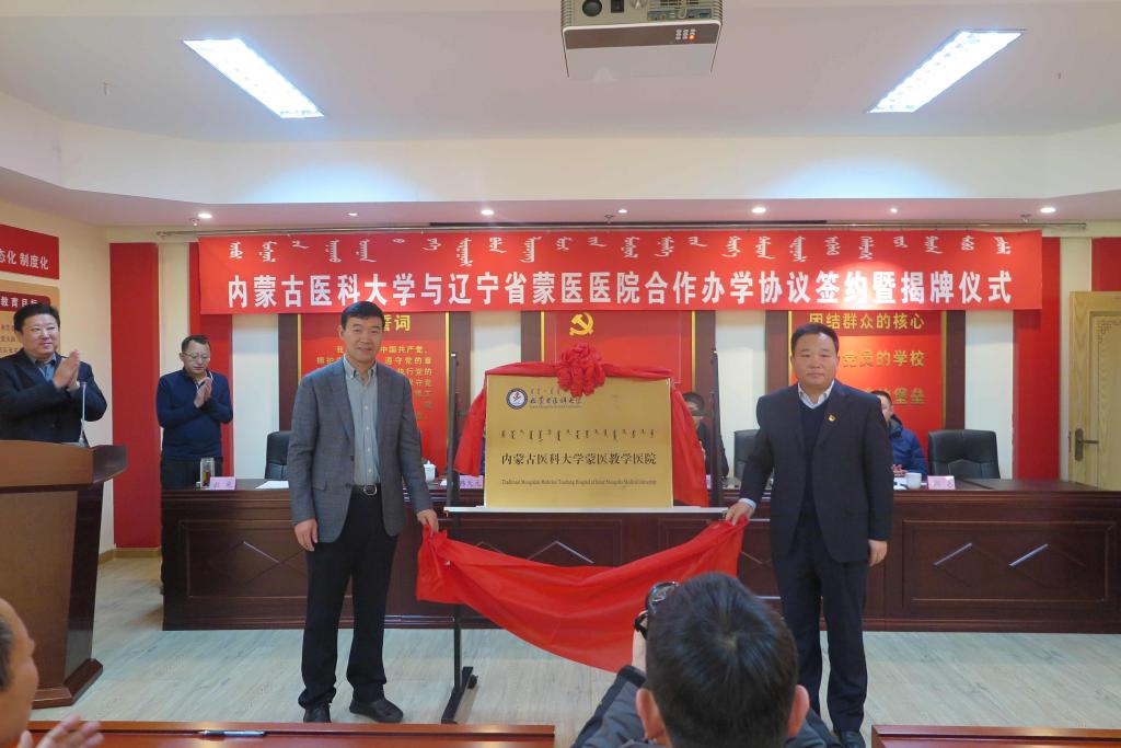 2020年1月5日,学校与辽宁省蒙医医院举行了蒙医教学医院、创新创业见习基地合作办学签约暨揭牌仪式,实践教学部副主任巴特尔,蒙医药学院院长陈英松,阜蒙县卫生健康局副局长韩天元,辽宁省蒙医医院党委书记敖光,院长李晓波等出席签约暨揭牌仪式,医院领导班子、科主任及职工代表百余人参加仪式。