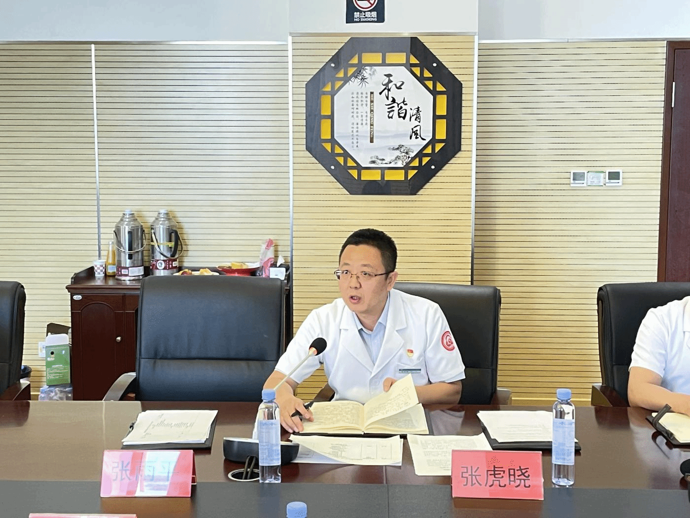 呼和浩特市卫生健康委员会党组成员、副主任张雨平、呼和浩特市妇幼保健院党委书记赵锦明、院长张虎晓、首都医科大学挂职副院长黄静、副院长崔海龙、李霞、郑玉龙及科教科、各临床教研室负责人及教学秘书参加了评估工作会。赵锦明介绍参加本次评估的领导及专家,张雨平主任致欢迎词,巴特尔介绍了本次评估的目的及意义,随后,赵锦明向专家组汇报自评情况。评估专家分成4个工作小组按照评审指标体系要求,通过实地考察医院的基础教学设施和硬件设备条件、查阅相关资料、听课、检查教学查房、病例讨论、走访相关科室、实践技能中心、图书阅览室、自习室,召开教师座谈会、学生座谈会等形式对呼和浩特市妇幼保健院进行了全面评估。