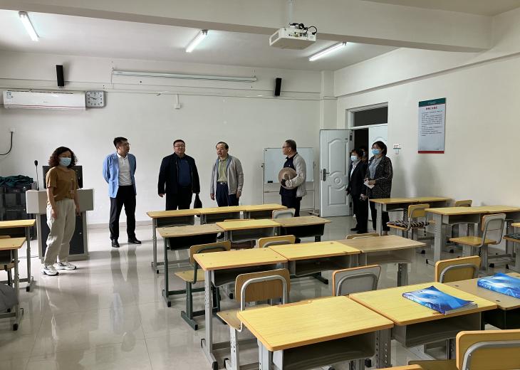在巴彦淖尔,巴盟临床医学院院长高雯、常务副院长王腾祺参加座谈会。会上王腾祺副院长就巴彦淖尔医院秋季开学准备情况进行详细汇报,并进行详细工作交流。会后实地走访、参观了学生教室、食堂、宿舍、临床技能中心等。